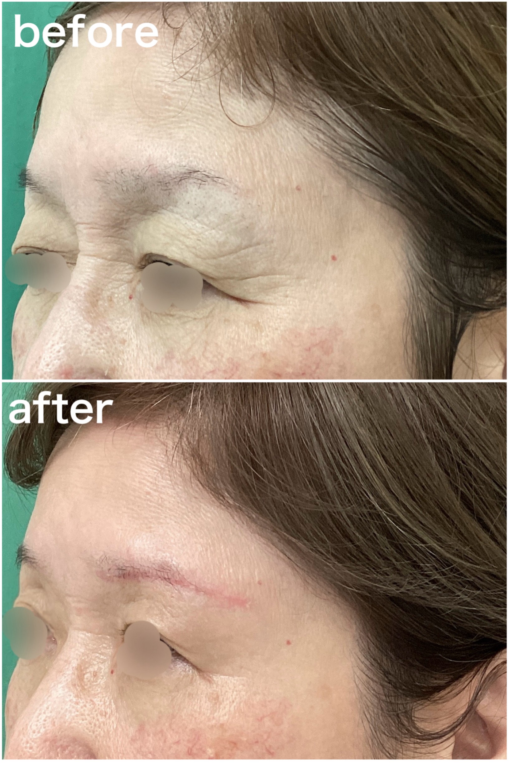 たるんだ皮膚を切除することで、目が開きやすくなります。厚みとたるみがなくなることで視界が広がり、物を見やすくなります。